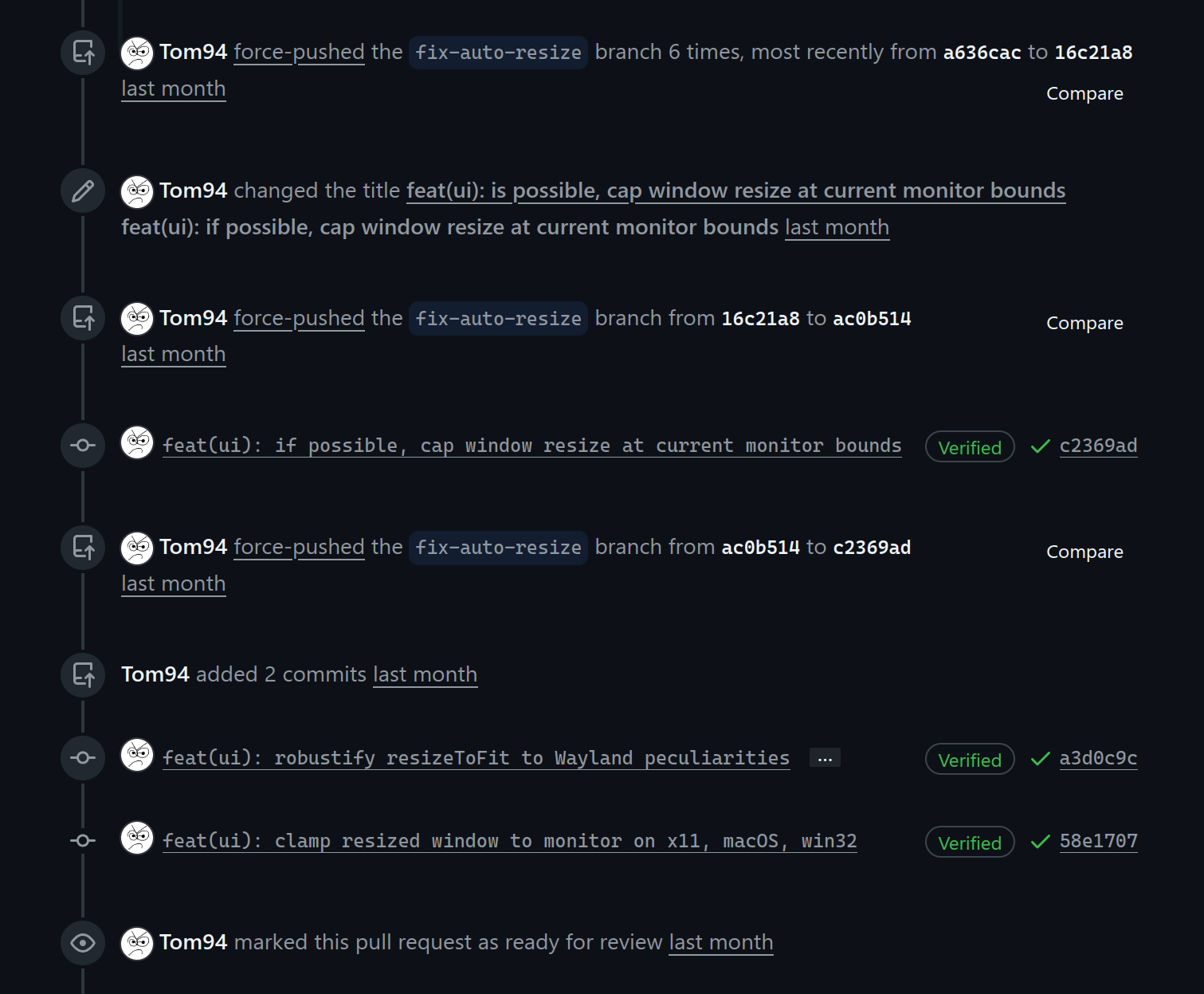 You wanted a feature introduced to the program and wrote the necessary code to facilitate it. Naturally, you have your own branch, likely hosted on your own fork of the repository, and you open a merge/pull request to get review feedback before it's possible to merge the change. This is important because there could be things you might have missed in the process, for example, you might have broken a build for another target (aarch64, macOS, etc.), and nobody wants regressions. Such feedback could also help assist you with adjusting your coding style to match the program's, so on and so forth. That much is probably very clear.